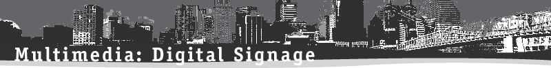 Digital signage is a revolutionary advertising technology in which electronic, flat screen panels can be placed in high-traffic areas and display multiple messages over the course of a 24 hour day. Our Dayton, OH partner, Signature Technologies, has developed a unique content management system which allows users to control the messages on an unlimited number of screens. Similar to a radio playlist, the user assigns an order to the messages or can specify an exact time when the ad. plays during the day. |